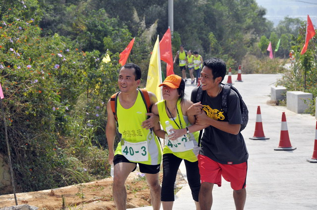 本屆賽事,異于往年的高溫對運動員來說是非常大的考驗。去年百公里的第一名且今年一路領先的運艷橋在90公里處出現(xiàn)抽筋,無奈地退出了比賽。和他同樣因抽筋中暑而不得不退賽的選手還有不少,艱苦的百公里縱走果然是對自我極限的挑戰(zhàn)。最終,曹金元以7小時33分08秒奪得了男子組第一名,這個成績比他去年獲得第三名的7小時07分08秒慢了將近半個小時;今年的第二名是來自臺灣的著名選手何信言,他的成績是7小時58分54秒,他曾是2010花東縱谷超級馬拉松冠軍、2011北京昌平耐力跑百公里臺灣站冠軍;洪啟標以7小時59分38秒、不到一分鐘的差距獲得了第三名。女子組前三名為山東房廣霞(9小時18分39秒)、山東張美英(9小時19分19秒)、遼寧潘梅(9小時34分25秒)。獲得女子組第11名的是來自日本的前澤典子。在11月6日的閉幕式上,象嶼集團黨委副書記陳偉彬,與翔安區(qū)政府領導、國家奧林匹克體育中心領導一道,為這些獲獎運動員頒獎。