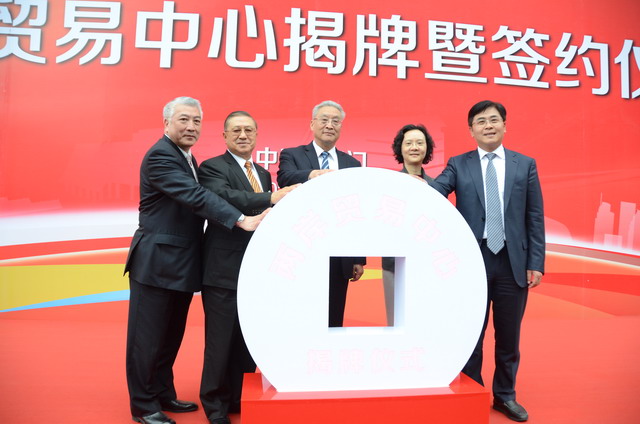 海峽兩岸關(guān)系協(xié)會張銘清副會長、商務(wù)部臺港澳司陳星司長、廈門市人民政府張燦民副市長、臺灣兩岸共同市場基金會詹火生理事長、臺灣工商協(xié)進(jìn)會駱錦明理事長為兩岸貿(mào)易中心總部揭牌