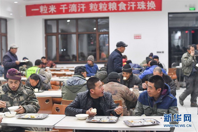 免費(fèi)餐廳中,糧農(nóng)們邊用晚餐邊等待過(guò)磅、卸糧、結(jié)算