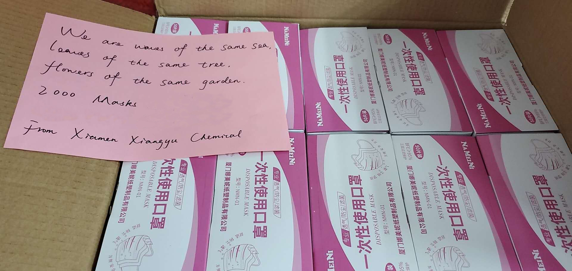 象嶼化工寄給法國友商的口罩