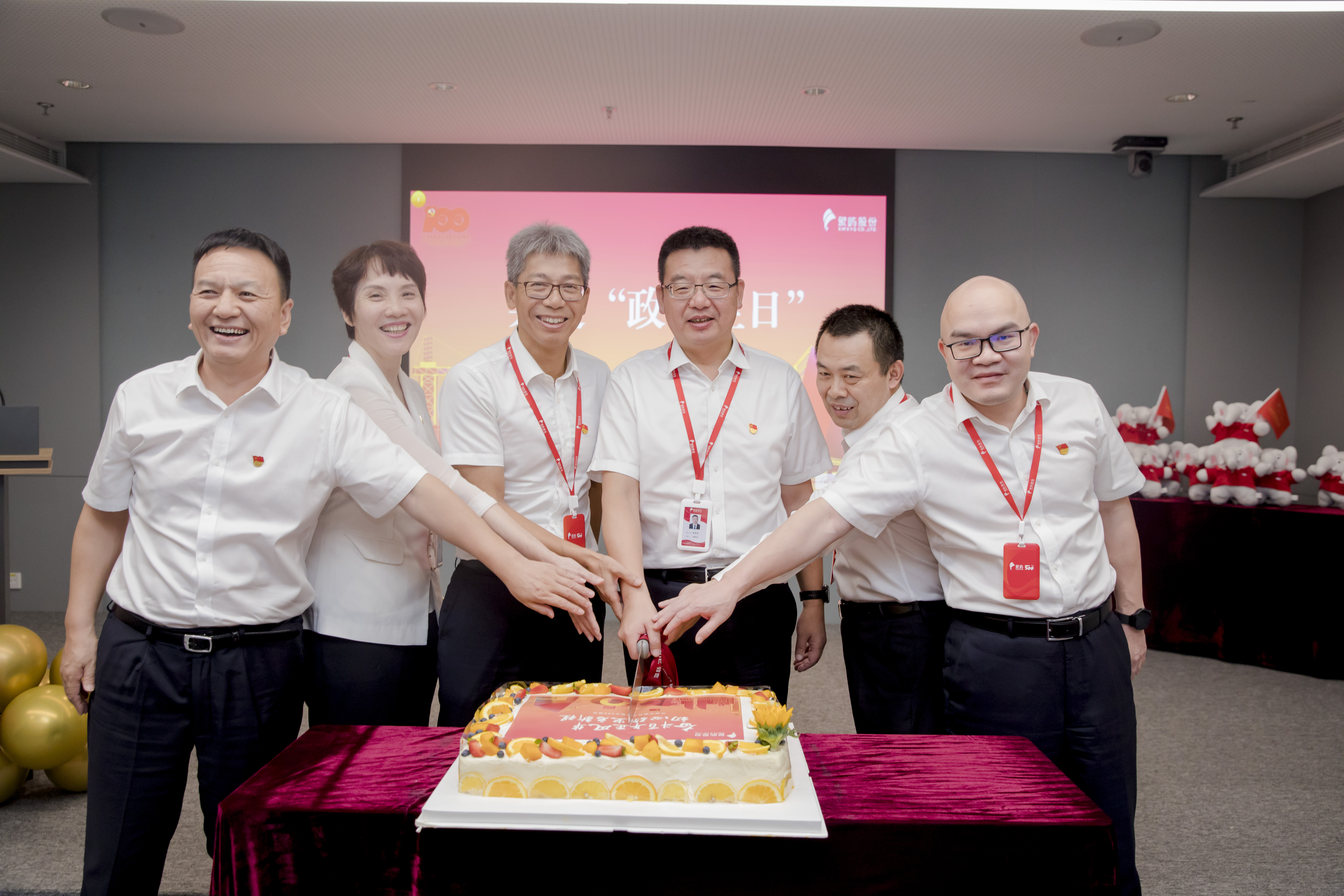上午11時,象嶼股份黨委開展百人慶生大會,象嶼股份黨委領導班子成員、在廈黨支部書記及政治生日黨員代表等100余名同志同過“政治生日”,共憶入黨初心。