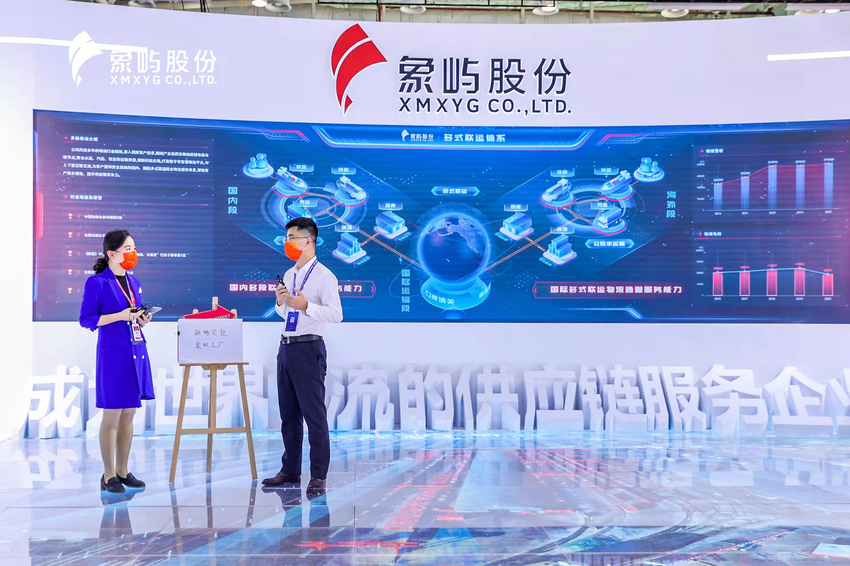 天屏地屏主屏三屏互動(dòng), 全景地屏展現(xiàn)了象嶼股份農(nóng)產(chǎn)品、能源化工、金屬礦產(chǎn)供應(yīng)鏈板塊的業(yè)務(wù)亮點(diǎn),通過東北象嶼糧倉(cāng)、陜西場(chǎng)站、印尼不銹鋼冶煉項(xiàng)目等典型項(xiàng)目實(shí)景展示,進(jìn)一步詮釋象嶼業(yè)務(wù)模式及國(guó)際化發(fā)展!