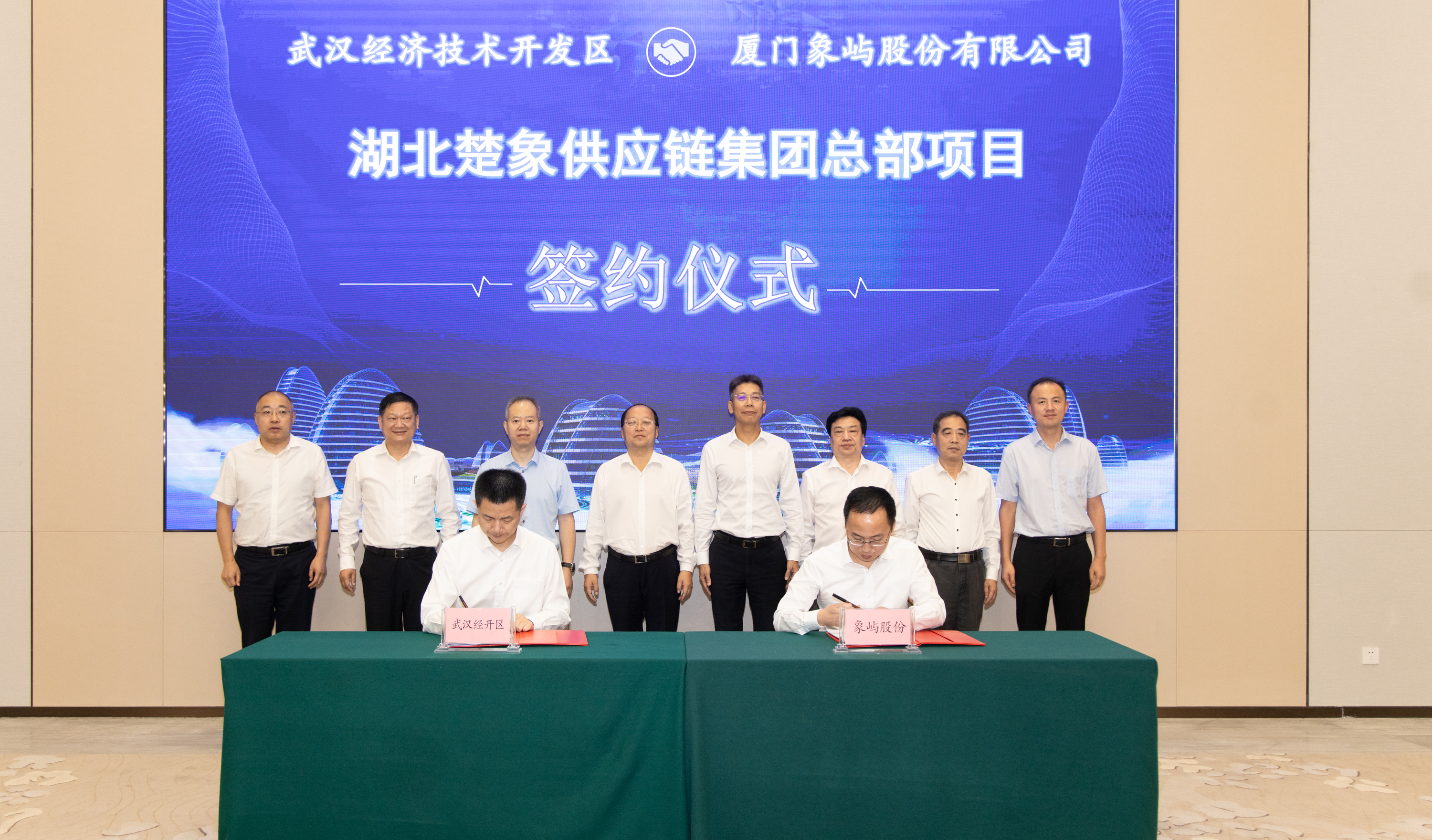 9月28日下午,廈門象嶼股份有限公司與武漢經(jīng)濟(jì)技術(shù)開發(fā)區(qū)簽署項(xiàng)目合作協(xié)議,湖北楚象供應(yīng)鏈集團(tuán)總部項(xiàng)目正式落戶武漢經(jīng)開區(qū)。在象嶼股份黨委書記、總經(jīng)理齊衛(wèi)東,市委常委、武漢經(jīng)開區(qū)工委書記劉子清,湖北交通投資集團(tuán)有限公司黨委書記、董事長龍傳華,黨委副書記、總經(jīng)理盧軍等共同見證下,象嶼股份黨委委員、副總經(jīng)理范承揚(yáng)與武漢經(jīng)開區(qū)工委副書記、管委會主任唐超分別代表雙方簽約。